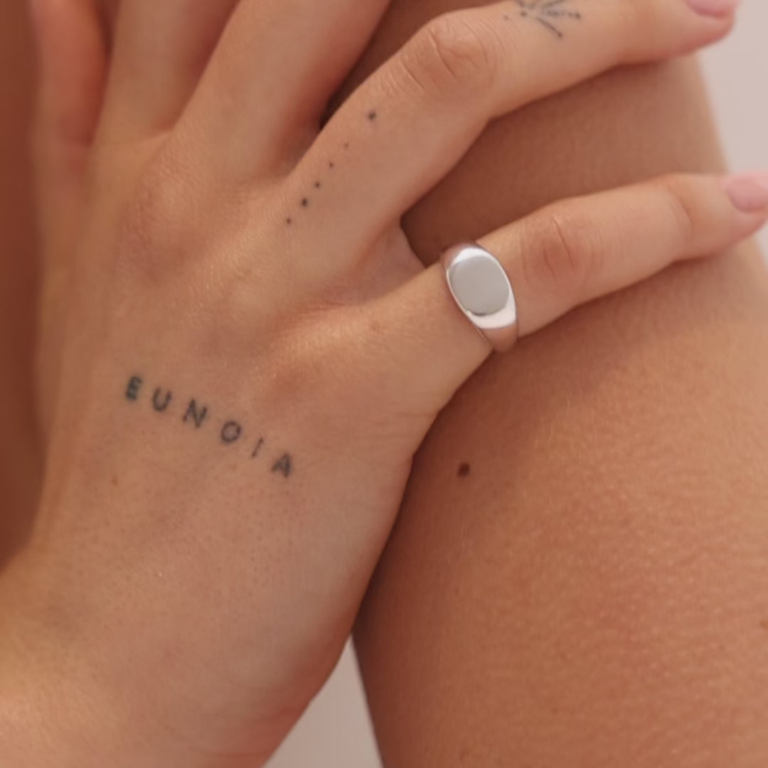 טבעת מיני בל עשויה מכסף 925, בעיצוב חותם מעוגל וחלק. מתאימה לענידה על הזרת או על אמצע האצבע, ומוסיפה נגיעת אלגנטיות מעודנת שמשדרגת כל הופעה. הטבעת מושלמת ללבישה יומיומית כמו גם לאירועים מיוחדים, עם עיצוב מינימליסטי ואלגנטי שיהפוך אותה לתוספת מושלמת לאוסף התכשיטים שלך.