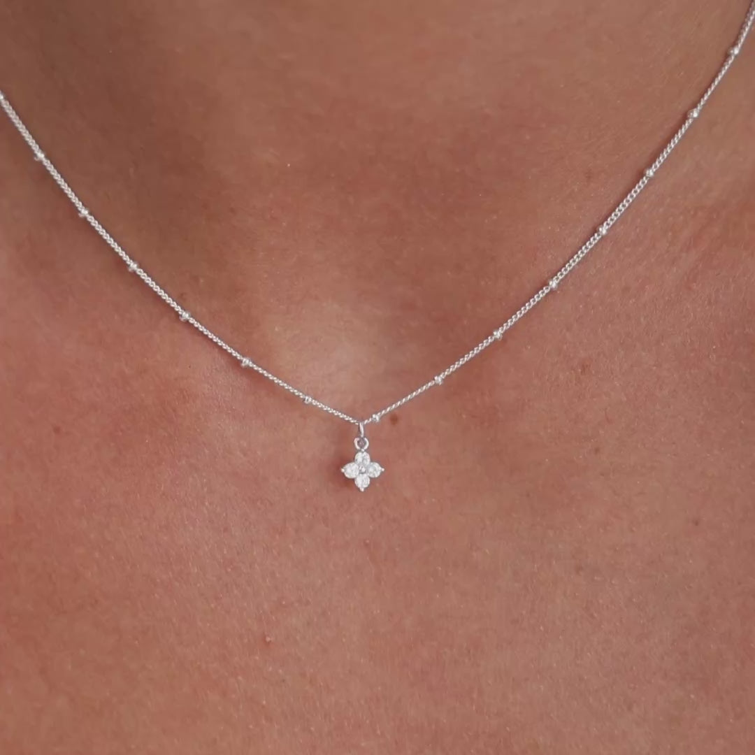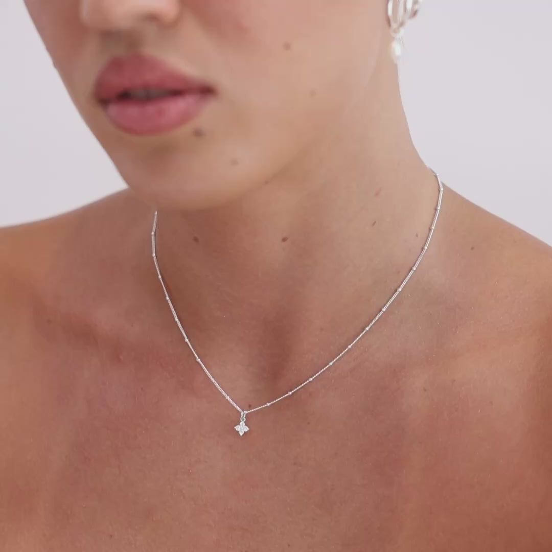 שרשרת טיאנה מכסף סטרלינג 925 מציגה תליון פרח משובץ על שרשרת עם כדורים קטנטנים ברווחים שווים, היוצרת מראה רומנטי ואלגנטי. התליון המעוצב כפרח משובץ באבני זירקוניה מעניק לשרשרת נצנוץ מרהיב, בעוד שהכדורים הקטנים מוסיפים מימד ייחודי ועדכני. עשויה מכסף סטרלינג 925 איכותי, השרשרת היפואלרגנית וניקל פרי, ולכן מתאימה לעור רגיש. זו הבחירה המושלמת להשלמת כל מראה אופנתי, בין אם לאירוע מיוחד או ליום יום.