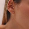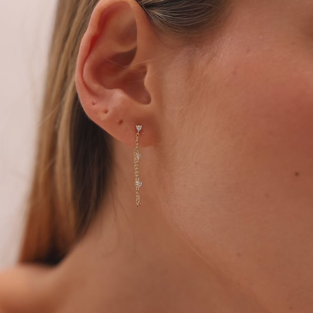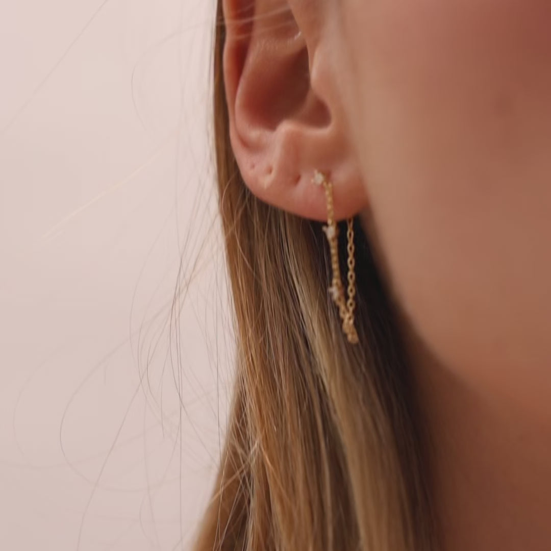 עגילי שרשרת עדינים בציפוי זהב 14K, בעיצוב משתלשל עם שיבוץ זירקונים נוצצים לאורך החוליות.