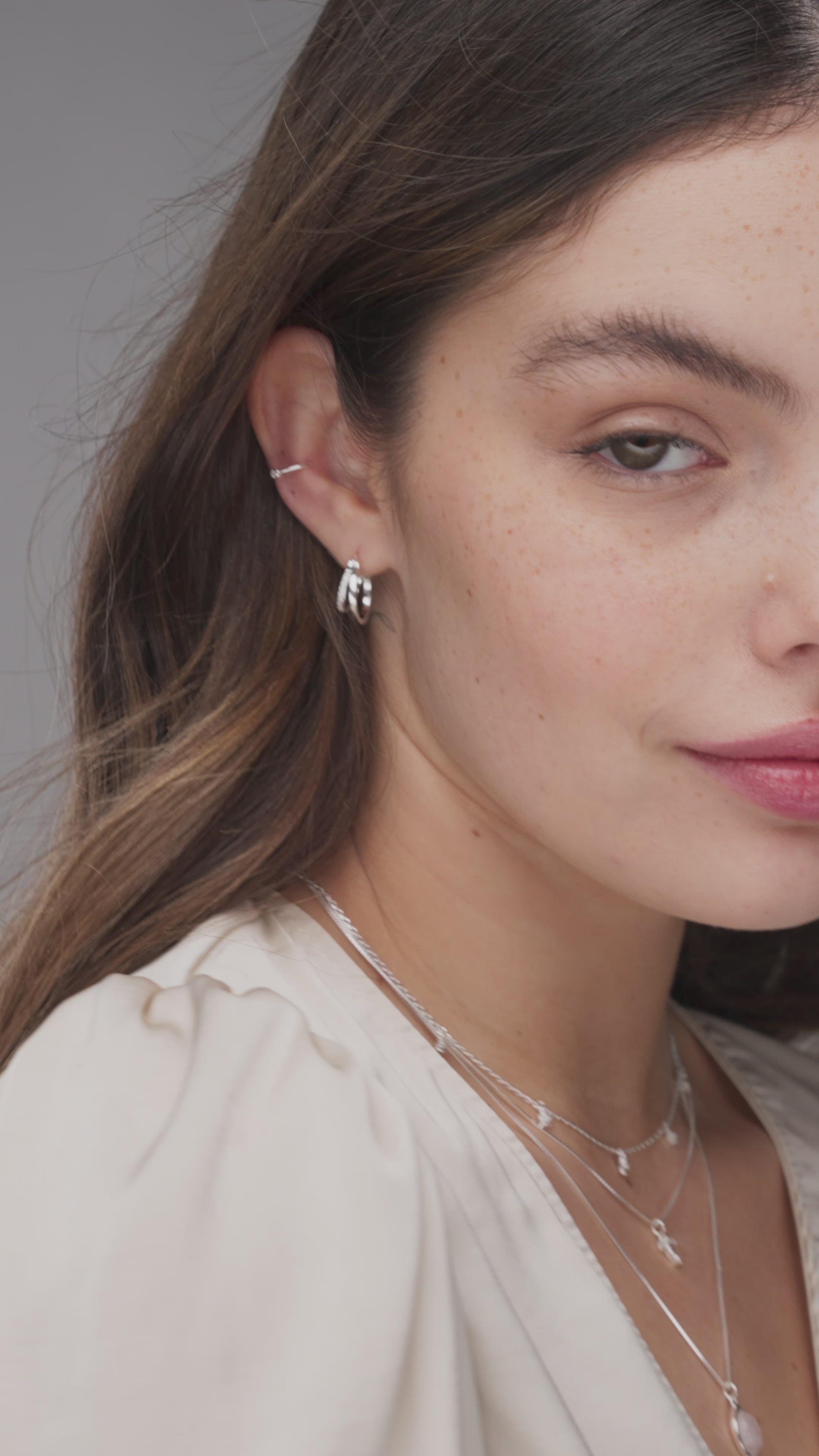 עגילי צ'ארלי כסף 925 בעיצוב חישוק כפול עם שיבוץ זירקונים נוצצים שמוסיפים ברק עדין. עגילים מודרניים ואלגנטיים המתאימים לשימוש יומיומי וגם לאירועים מיוחדים. עשויים מכסף סטרלינג איכותי, היפואלרגניים ונוחים לענידה ממושכת לאורך כל היום.