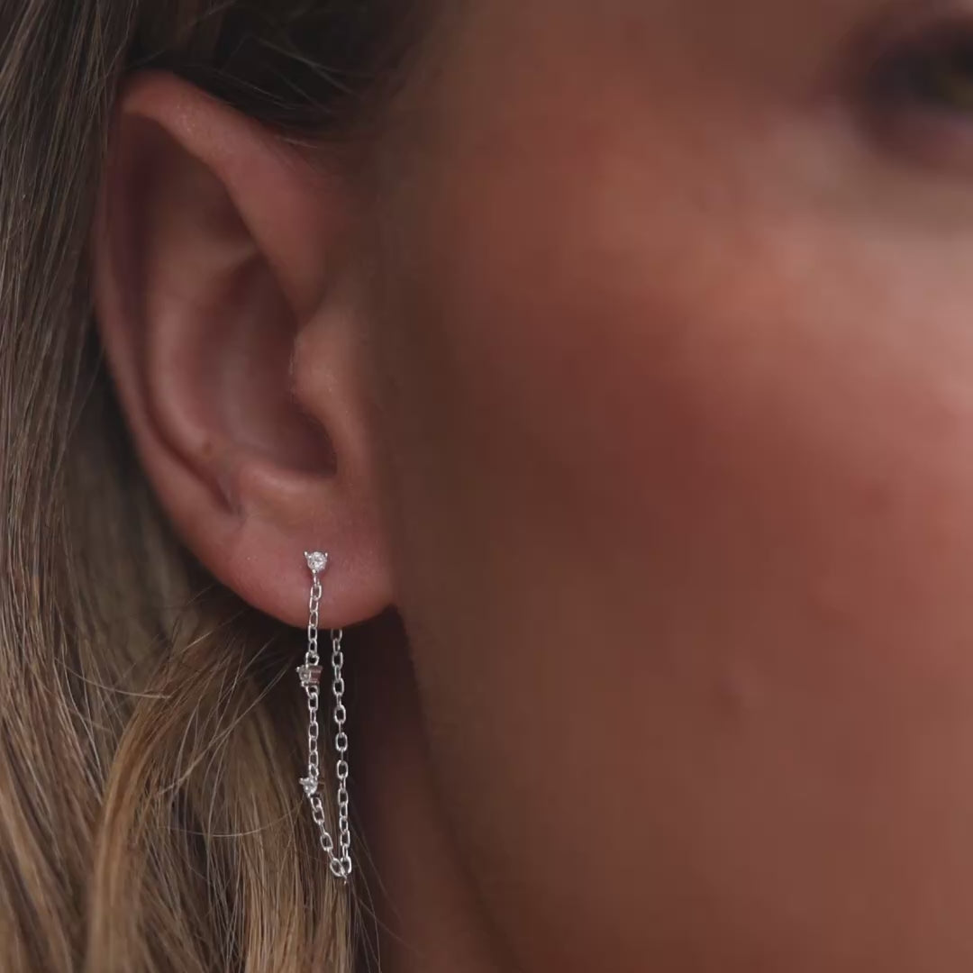 עגילי קסקדה כסף 925 בעיצוב שרשרת דקה משתלשלת עם שיבוץ זירקונים נוצצים לאורך החוליות. עגילים אלגנטיים בעלי מראה זורם ועדין, מושלמים להוספת נגיעה של סטייל לכל הופעה. עשויים מכסף סטרלינג איכותי, היפואלרגניים ונוחים לענידה לאורך כל היום והלילה.
