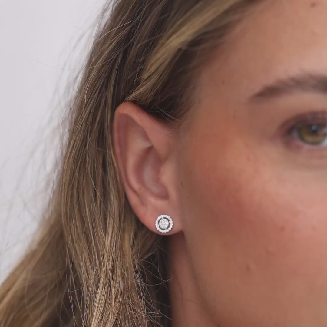 עגילי סירקליה כסף 925 בעיצוב עגול אלגנטי עם שיבוץ זירקונים נוצצים בהילה כפולה מסביב למרכז. עגילים מרהיבים שמוסיפים זוהר ונוכחות, מתאימים לשימוש יומיומי וגם לאירועים מיוחדים. עשויים מכסף סטרלינג איכותי, היפואלרגניים ונוחים לענידה ממושכת לאורך כל היום.