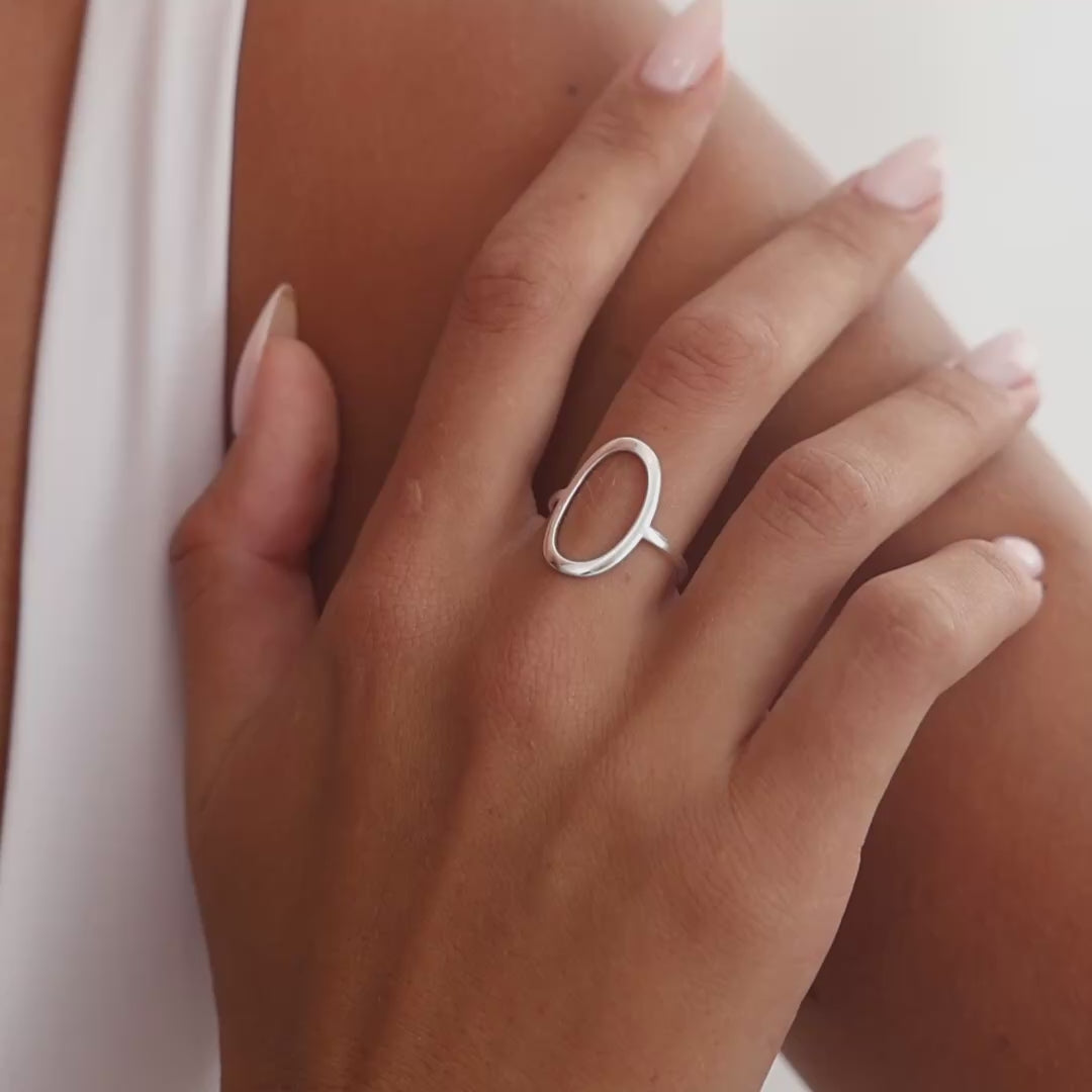 טבעת ג'ניפר כסף 925 בעיצוב גאומטרי מודרני עם אליפסה חלולה במרכז. שילוב של קווים נקיים ומראה מינימליסטי יוצר טבעת ייחודית, המתאימה לנשים שאוהבות תכשיטים עם נוכחות אלגנטית. תכשיט עכשווי שמוסיף סטייל לכל לוק יומיומי או ערב.