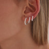 עגילי חישוק בגודל בינוני (17 מ״מ) בעיצוב קלאסי ונקי, משובצים בשורת זירקונים נוצצים לכל אורך החזית.