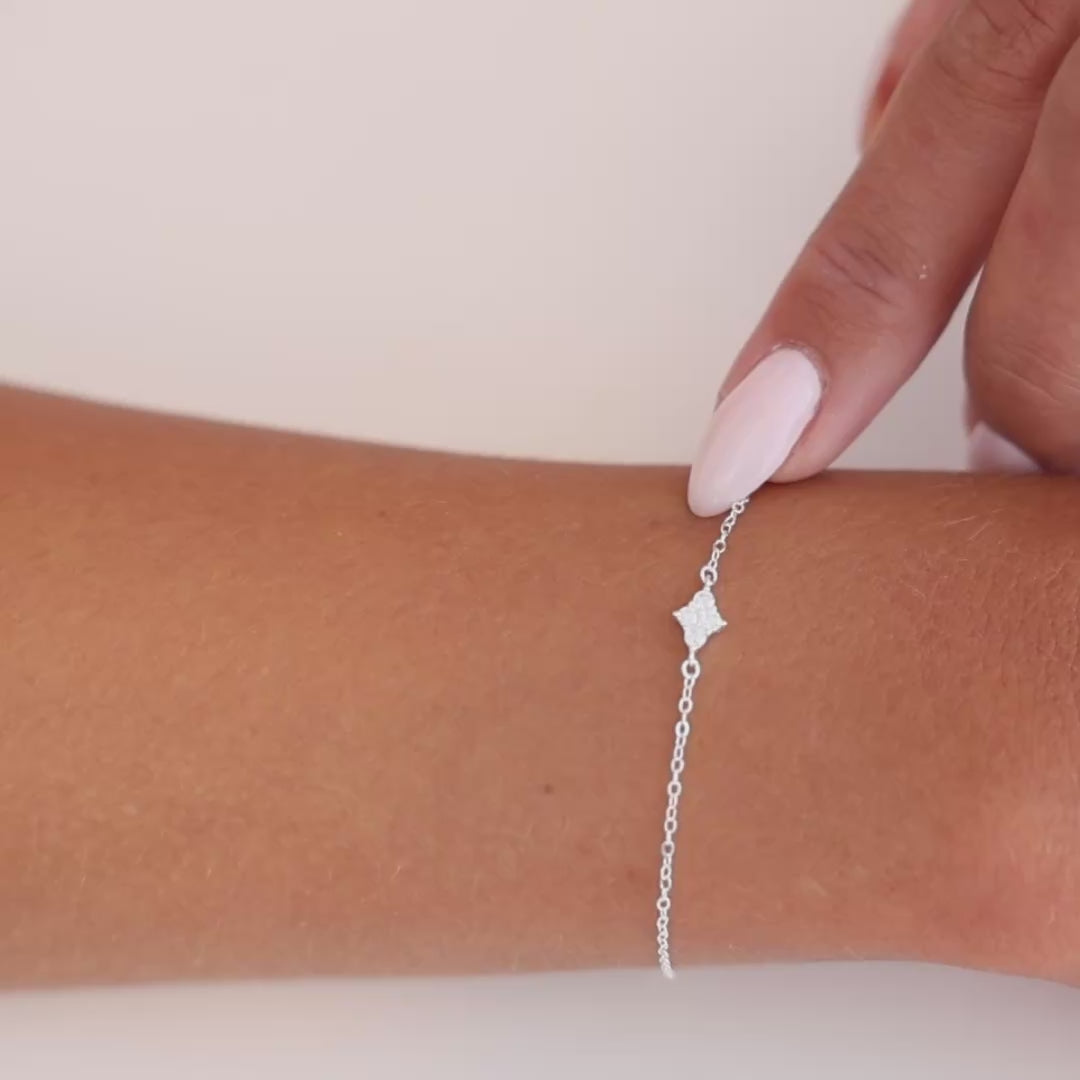 צמיד טוטה מכסף סטרלינג 925 כולל עיצוב מרהיב עם ארבע אבני זירקוניה משובצים בצורת פרח, המעניקים מראה ייחודי וזוהר לכל הופעה. עיצוב הפרח המבריק מוסיף נצנוץ ועדינות שמתאימים לכל סגנון ואירוע, החל ממראה יומיומי ועד לערב מיוחד. עשוי מכסף סטרלינג 925 איכותי, הצמיד היפואלרגני וניקל פרי, מה שהופך אותו לבחירה מושלמת עבור עור רגיש. צמיד טוטה מוסיף נגיעה של זוהר ואלגנטיות לכל הופעה, ומשדרג כל סגנון עם יופי טבעי ועדין.